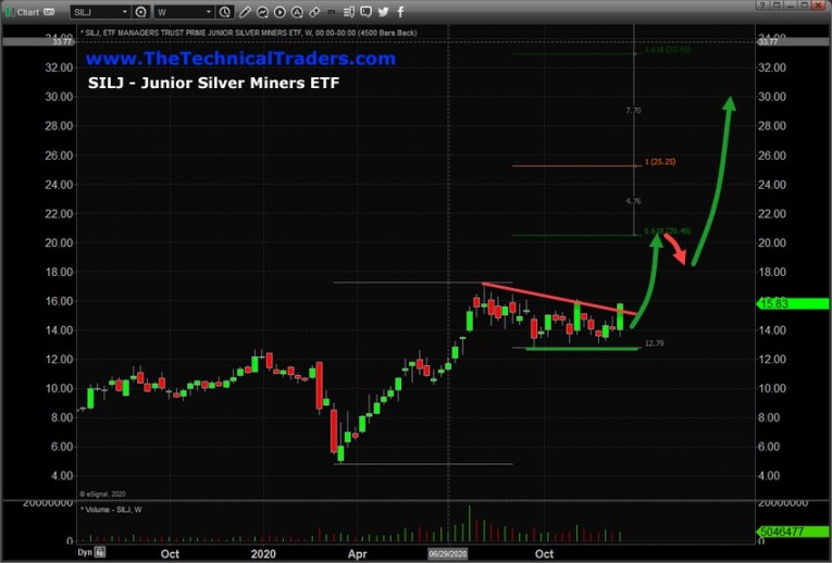 Junior Silver Miners, SILJ, should begin to advance to levels near $21, then stall for a few days/weeks, then attempt to advance to levels above $28~$30 if our research is correct. This advance in the Junior Silver miners will not likely peak near $30 though. This rally in metals, miners, and other commodities may last well beyond 2026~27 based on our research. This type of trend could really turn into a life-changing appreciation/depreciation phase for traders.