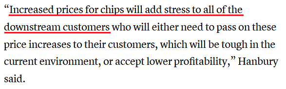 He added: “The chemicals used in [chip] manufacturing have increased 10%-20%. Similarly, the labor required to build new semiconductor facilities has also seen shortages and increased wage rates.”