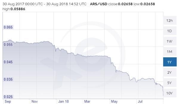 Emerging market chaos is now front page news. Let’s start with Argentina, where the peso has resumed its plunge: