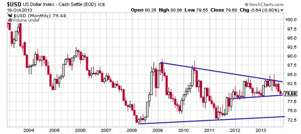 According to Brett Arends who published an article on Marketwatch on October 4 you can grab any Wall Street trader in a bar, or any portfolio manager in his office, and he’s likely to tell you gold is finished. Though according to him the people at the United States Treasury have the opposite opinion remaining firm believers in gold. That is in my point of view a very contrarian opinion of the US dollar, the reserve currency, because gold and the US dollar are each other’s opposites. The gold price is expressed in US dollars and when the dollar goes up gold goes down and visa versa. This is the normal correlation. Gold and the reserve currency are competitors for the reserve status. And as I have explained in other articles gold will only be structurally strong if and when the US dollar and the US economy are weak and have passed the tipping point (a situation that can’t be reversed).