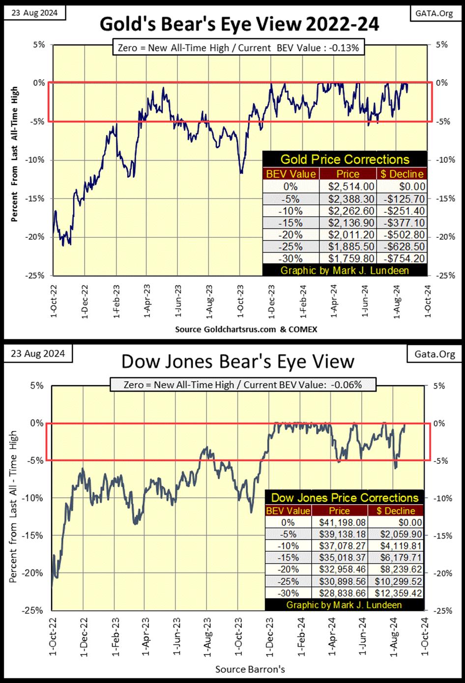 A few weeks ago, I began comparing gold’s BEV chart with the Dow Jones’ BEV chart, as they have been so similar these past few years, which is something not to be expected.