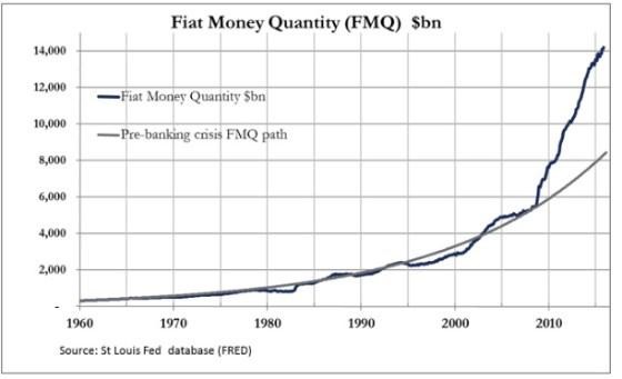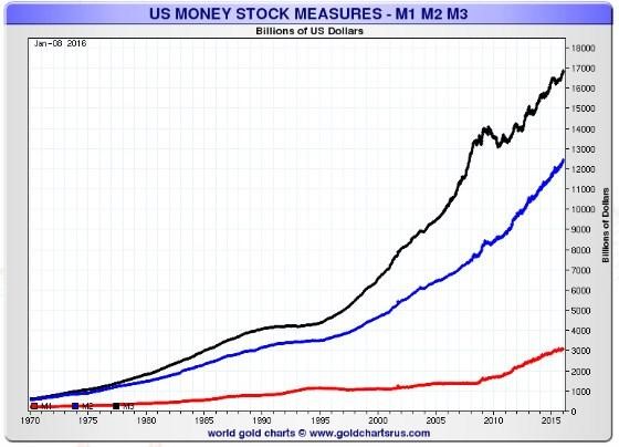 This chart courtesy Nick Laird at Goldchartsrus.com shows money supply in the USA continues to rise exponentially.