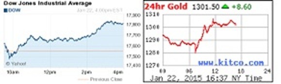 It’s 2:30 AM MST Friday morning, on my “day off.” However, I couldn’t sleep because too much is going through my head – as I digest the second “financial big bang” in just a week’s time. Many more are coming this year – perhaps as early as Monday, following Sunday’s Greek elections; and no doubt, several will be of the “black swan” variety. As discussed in yesterday’s MUST LISTEN audio blog, the two guaranteed to “rock the world” are the inevitable “Yellen Reversal” – i.e., when Janet Yellen admits the U.S. needs more QE as well; and, more calamitous yet, when the surging dollar forces the Chinese to de-peg the Yuan. In other words, whilst the Swiss National Bank and ECB got the party started this week, it’s not even 7:00 PM on New Year’s Eve. I have little doubt “midnight” will be reached in the not too distant future, perhaps this year; and when it does, Richard Russell’s expectation of the end of the gold Cartel – or as I deem it, the “New York Gold Pool,” will be forever destroyed.