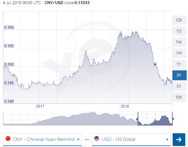 In January, the Trump administration began imposing tariffs on various products and countries that intensified a trade war. On July 6, when the U.S. imposed tariffs on China the trade war escalated further and started to become more of a currency war. The yuan to US$ exchange rate was already falling in 2018 and dropped further after the July 6 announcement (I have July 4 highlighted on the chart). In essence the devaluation offset the tariffs.