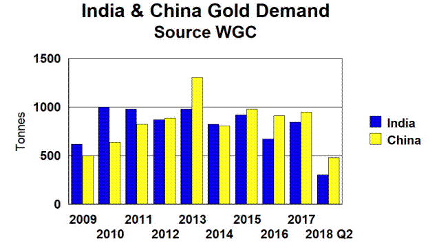 While demand from India, the second largest consumer, looks soft, it does take into effect smuggling and a tax loophole. Gold is subject to a 10% import tax, but if doré bars (not pure or refined) are imported, the tax is avoided is how I understand it. The import of doré bars removes supply to refineries elsewhere. In 2016, the World Gold Council estimated smuggling into India amounted to 120 tonnes.