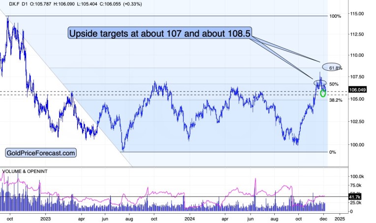Please note how perfectly the USD Index moved back up after reaching the lower of the dashed lines (support based on the previous highs). At the same time, it invalidated the move below the late-November low.