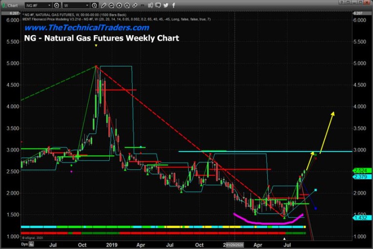 This move from the low $1.50 to $1.65 level in Natural Gas has resulted in a tremendous 70% upside price rally. Another $0.50 rally from current levels would represent a nearly 95% to 100% upside price rally from the ultimate lows near $1.43.