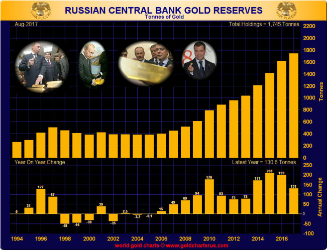 Official Gold Reserves of the Bank of Russia: Annual Purchases 1994 – 2017. Source:www.GoldChartsRUs.com