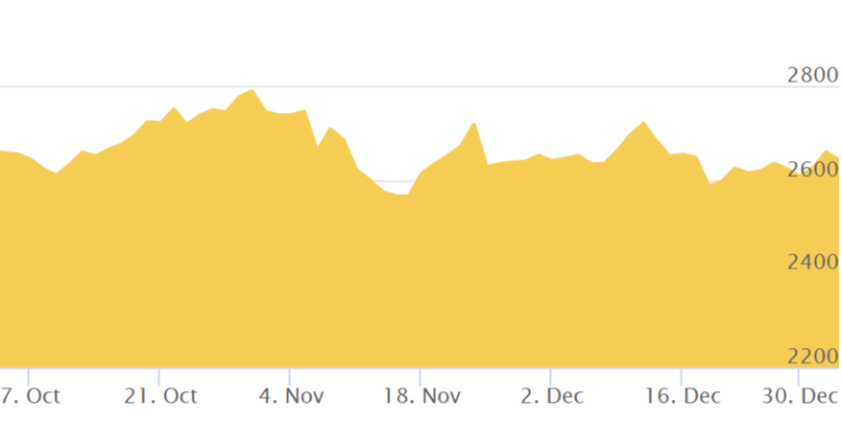 But think about that statement: A big sell-off took the price down to the $2,500s. A year ago, who would have thought we’d be talking about that price as support?