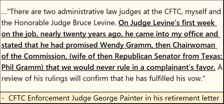 This situation for naked short selling is only possible because markets in the United States are “regulated markets.”  Aren’t these market regulators supposed to protect the interests of the public?  If you believe what CFTC Enforcement Judge George Painter said below, not always.