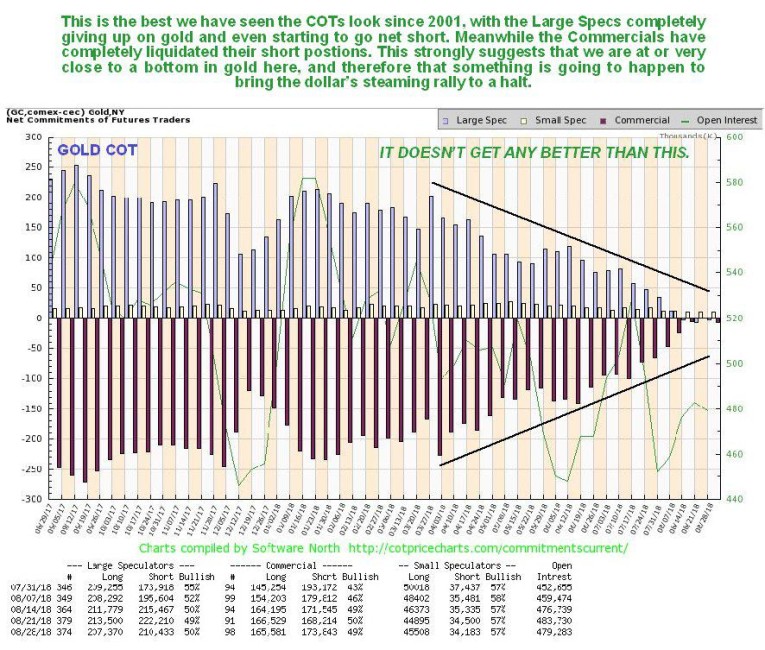 The net Commercial Hedgers chart is also unprecedentedly bullish, as it shows that this is the 1st time during the life of this chart, i.e. for the past 25 years at least, that they have held a net long position – put simply it doesn’t get any better than this…