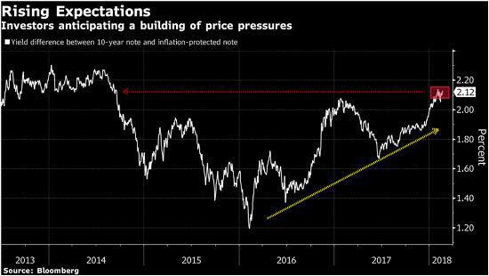Investors currently expect average annual increases in the consumer-price index of 2.1 percent over the next 10 years, based on trading in the bond market. That’s up from last year’s low of 1.67 percent set in June.
