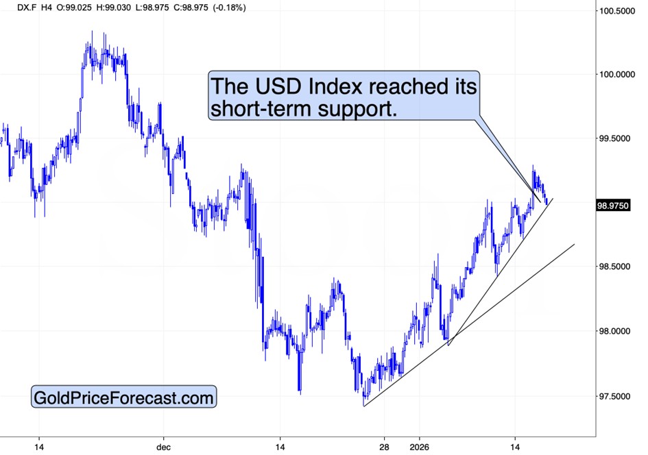 As I wrote yesterday, this might happen to a greater extent when the USDX holds above 100 – until that happens, most traders will view the situation in the USD as unclear.