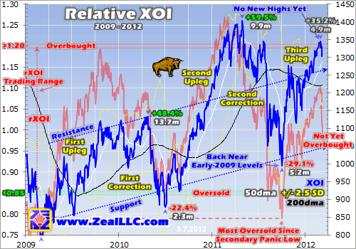 The same young-upleg arguments for oil apply to the XOI as well. Its Relativity trading range is 0.85x to 1.20x its 200dma. And the best we saw at its recent interim high in early March was just 1.102x, roughly only halfway to overbought territory so far. Before the XOI's second major upleg peaked last April, this metric had stretched as high as 1.237x! There is certainly no greed or euphoria evident in oil stocks today.