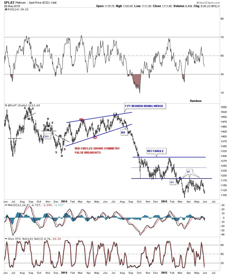 There is one more metal I would like to update you on that we’ve not looked at in some time and that is Platinum. Below is a daily chart that shows Platinum breaking out of the blue rectangle consolidation pattern back in early March of this year. It has made three backtests to the underside of the blue rectangle so far which is still holding resistance.