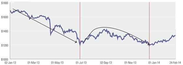 Figure 1: Gold Price Bottoms at Mid-Year and Year-End