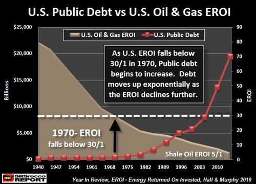 As I mentioned in my article below, the falling EROI – Energy Returned On Investment is the ROOT CAUSE of the massive increase in U.S. public debt (click on image to read article):