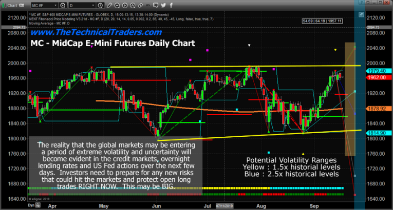 This MC, MidCap, Daily chart highlights the same range expansions (1.5x and 2.5x) related to the recent price ranges in the MidCap Index. Traders must take a moment to understand how an extremely volatile pricing event within these ranges could create dramatic profit or loss risks. Imagine what would happen is the MC was suddenly targeting 1775 or 1620 on some type of crisis event – a 20% to 30% price decline.