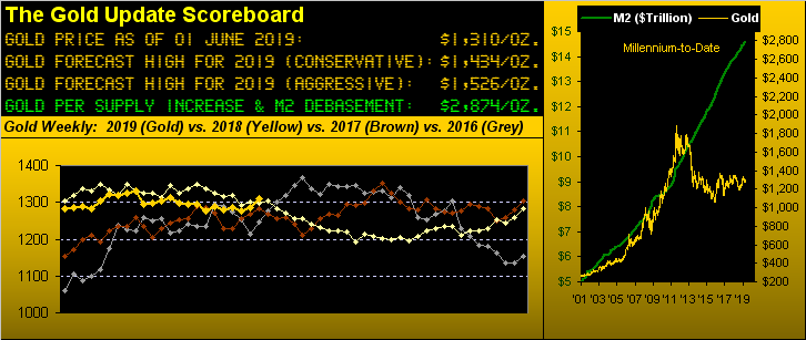 Awarded as well is Gold's overall performance for the month of May: albeit just +1.9%, 'twas Gold's first up month following three successive downers. One takes what one can get. And as one looks eastward from Base Camp 1377 across the alp-like peaks, 'tis clear they are the upside challenge above which Gold must make its ascent, else right back down again shall price be sent: