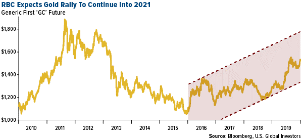 · RBC Capital Markets thinks that the price of gold could tack on another 11 percent to its 19 percent gains over the last year, reports Bloomberg. The bank’s strategists led by Christopher Louney wrote in a note that although gold prices have historically been volatile and could see some fluctuations over the next two years on a quarterly basis, the yearly story could paint a different picture. On a yearly basis, the trajectory is likely higher. And with gold’s rally potentially continuing, silver can also rally further, reports Bloomberg. The two metals are highly correlated, and with a comparative beta 1.3, silver offers greater potential upside.