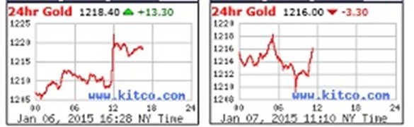 After three failed attempts this morning, TPTB haven’t even managed to get oil above yesterday’s five-year close of $47.90/bbl close. However, despite an utterly laughable ADP employment report, purporting the fourth highest increase in the past two-plus years (does ADP have any remaining credibility?); the Fed, as I write at 11:45 AM EST, has decidedly FAILED to goose the benchmark 10-year yield above the key psychological level of 2.0%. As I write, the early, PPT-generated stock gains are rapidly dissipating; the 10-year yield, after having topped at exactly 2.0%, is down to 1.96%; silver has turned positive, and gold has recouped nearly all its losses. And oh yeah, with the Euro in utter FREEFALL (yikes, 1.181!) – Euro-priced gold is exploding higher; taking with it Swiss Franc-priced gold, now 10% higher than when the “Save our Swiss Gold” referendum failed five weeks ago (think Swiss citizens aren’t boiling over with anger?).