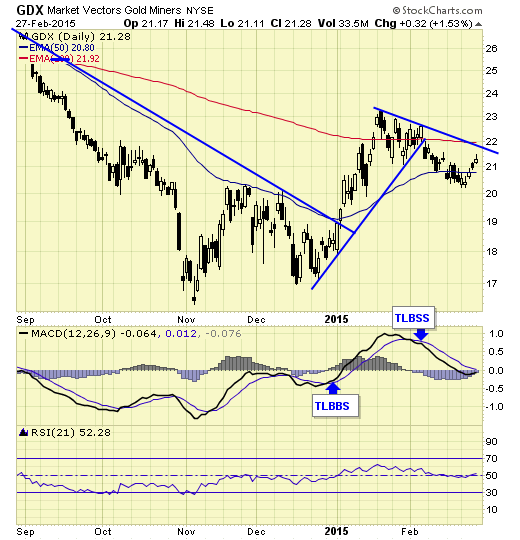 Long term – on major sell signal since Mar 2012 when $HUI was at 550.
