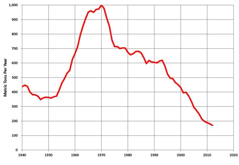– 2016 was first year of fall in mine production since 2008