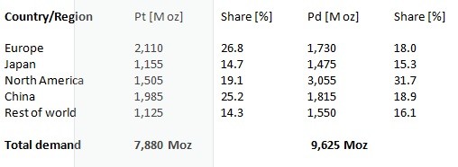 Platinum Usage Palladium Usage