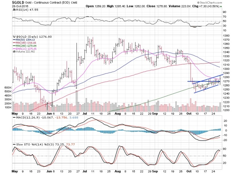 Gold ended the week up just 0.72% - and still it’s holding the major support area at the 200-day moving average. This rising channel isn’t the best of patterns. However, as long as we stay above the $1,260 level, we have to expect the next move to be higher.