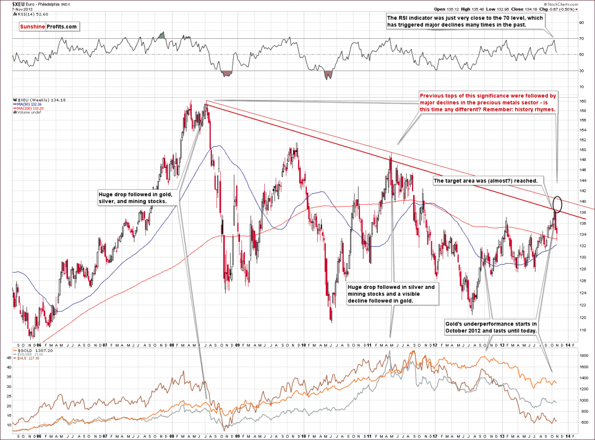 At the end of October, in our essay on dollar and the general stock market (https://www.gold-eagle.com/article/dollars-breakdown-stocks-breakout-and-implications-gold ) we discussed the USD and S&P 500’s implications for the precious metals market. After that, in our essay on gold price in November we examined the long- and the-short-term outlook for gold. And finally, in our Wednesday’s essay (https://www.gold-eagle.com/article/mining-stocks%E2%80%98-and-euro%E2%80%98s-implications-precious-metals ) we discussed the situation in the Euro Index and mining stocks. Back then, we wrote that the bearish outlook for the Euro Index was also bearish for gold, silver and mining stocks.
