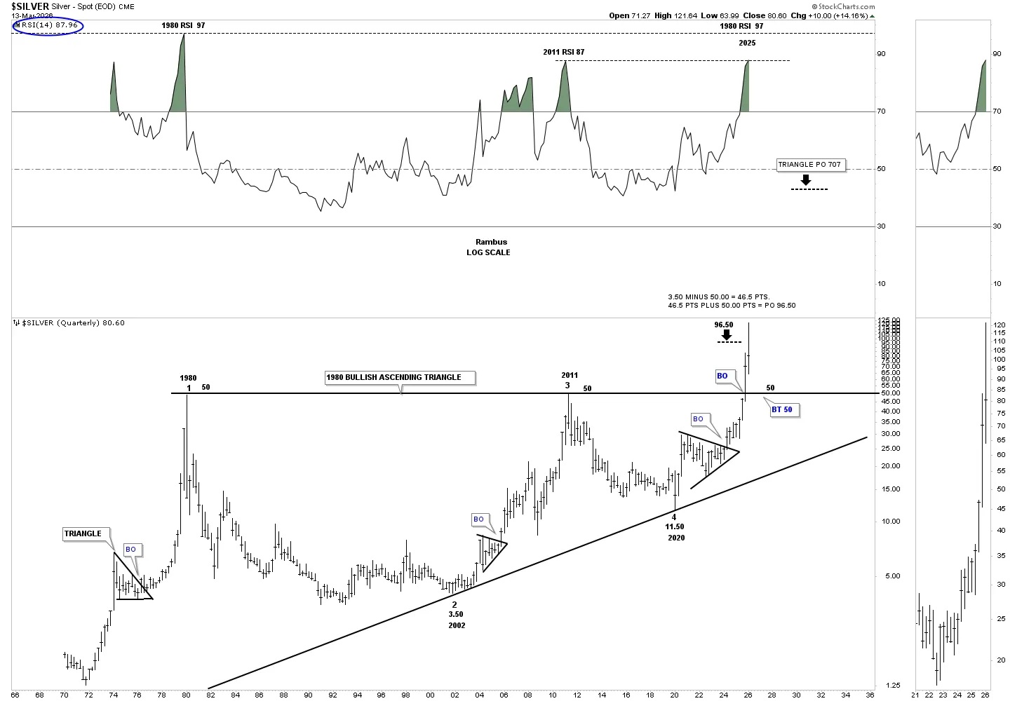What’s also very interesting is the initial decline off the 2011 high was 47%, and the initial decline from the January 2026 all-time high was 47%. Back at the 2011 high, silver traded sideways for close to two years before breaking down into its bear market decline. What is silver going to do this time? Stay tuned to find out. All the best…Rambus