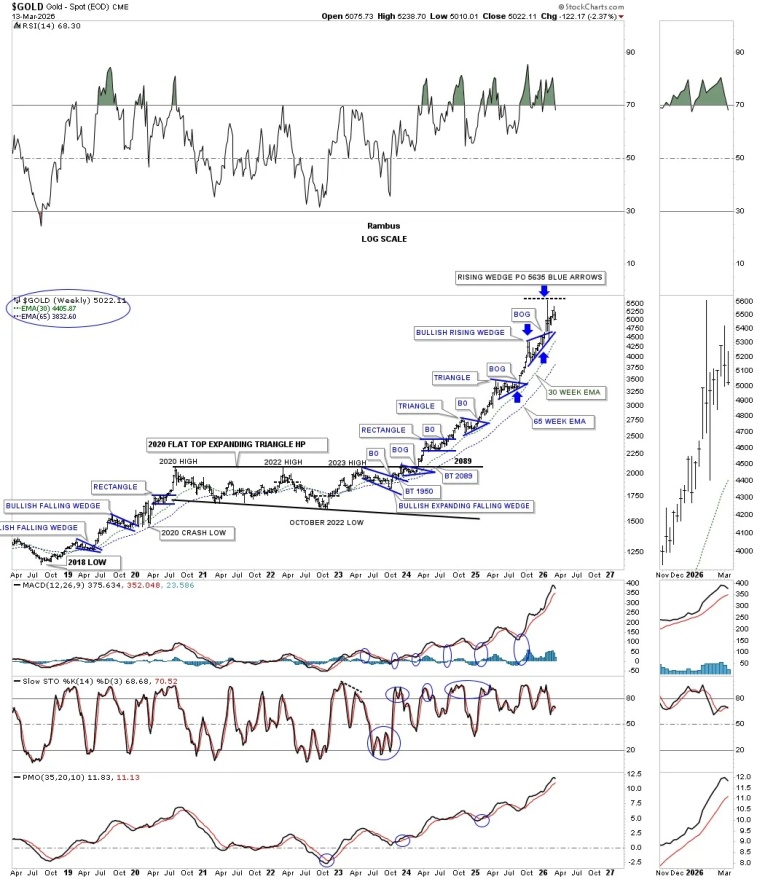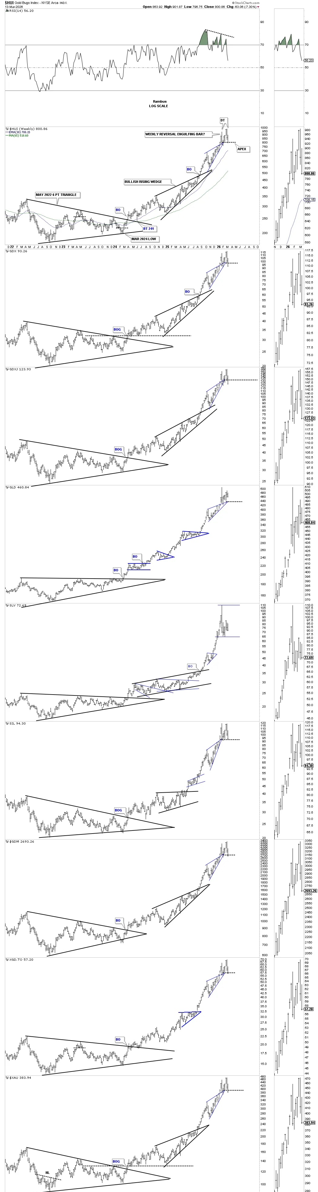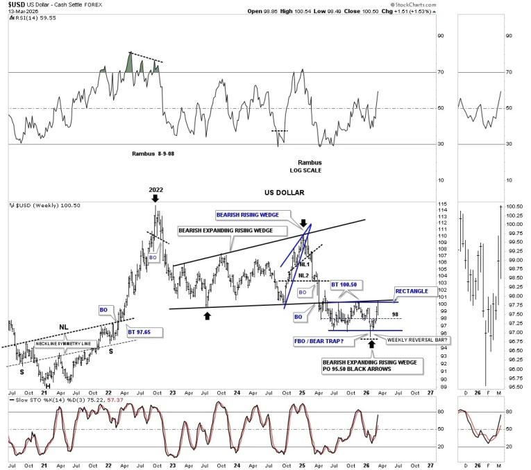 This much longer-term weekly chart for the US dollar goes back to the 2022 H&S low, which led to the parabolic rally in the US dollar and decline in the PM stocks that didn’t bottom until the 2022 high in the US dollar. That 2022 high in the US dollar was the true start of the once-in-a-lifetime rally in the PM complex.
