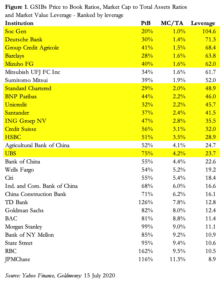 Sterling is exceptionally vulnerable to a systemic banking crisis, with European banks being the most highly geared of the GSIBs. The UK Government, in opting to side with America and cut ties with China, has probably thrown away the one significant chance it has of not seeing sterling collapse with the dollar.