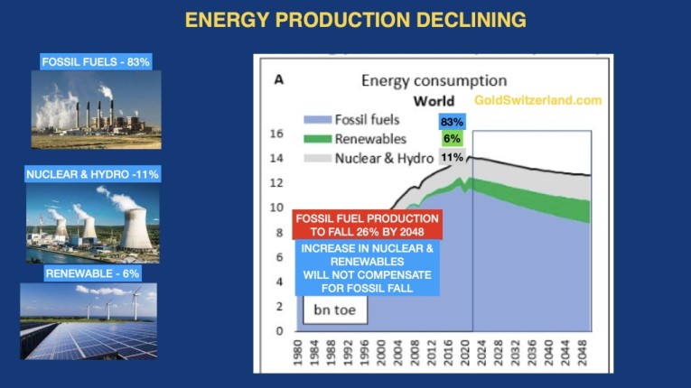 A further problem is that the world has reached peak energy by way of fossil fuels and there is no serious alternative in sight for decades.