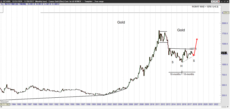 The dominant chart construction in Gold continues to be the possibility of an inverted H&S bottom pattern on the weekly and monthly graphs. Note: Some of you might have read that Ray Dalio (Bridgewater) is accumulating a sizable position in GLD. I believe Dalio will be right, but that he is early. See http://www.zerohedge.com/news/2017-11-13/ray-dalio-goes-gold-buying-spree-adds-575-gld-holdings-becomes-8th-largest-holder