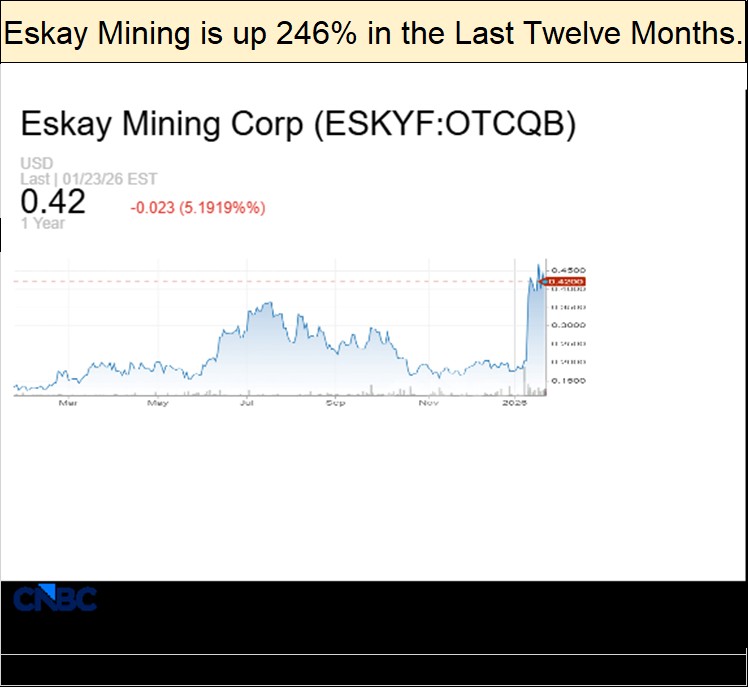 And what about the little exploration companies, such as the company I like; Eskay Mining?  From $0.13 a year ago, Eskay is currently trading over $0.40.  I expect 2026 will be a good year for Eskay.