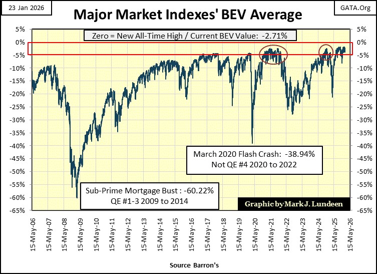 Do you want some excitement with the Dow Jones BEV chart below?  Wait until it deflates below its BEV -25% line (37,192), because one of these days – it will, and you’ll see plenty of excitement in the financial media.