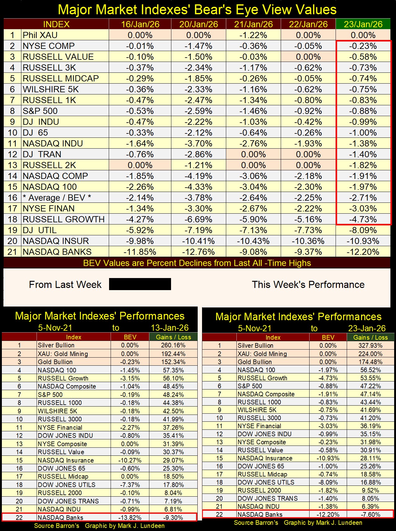 That is not happening now in January 2026, as the stock market continues seeing its valuations inflated, but oddly, not as fast as the precious metals valuations are being inflated.
