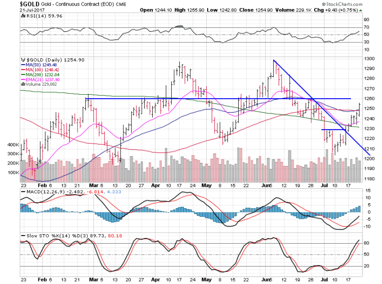 Gold gained 2.23% this week - and moved nicely past the $1,250 resistance area where the 50 and 100-day moving averages sit.