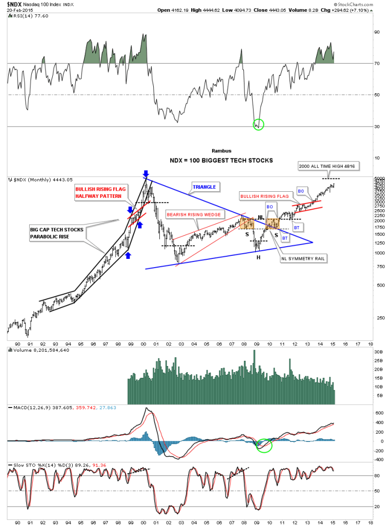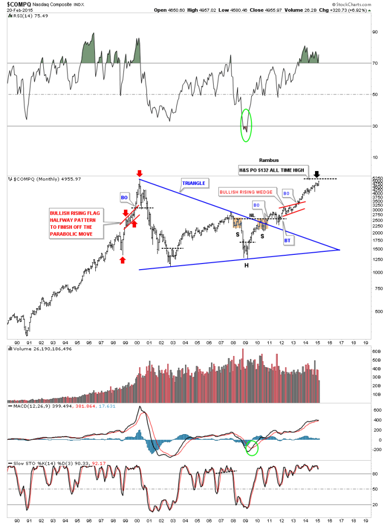 Below is a monthly chart for the COMPQ that shows you where the old all time high at 5132 comes into play. Even though I think the COMPQ is going to rally much higher we just have to overcome the old high and get it behind us. Actually most of the other stock market indexes are all ready breaking out to new all time highs.