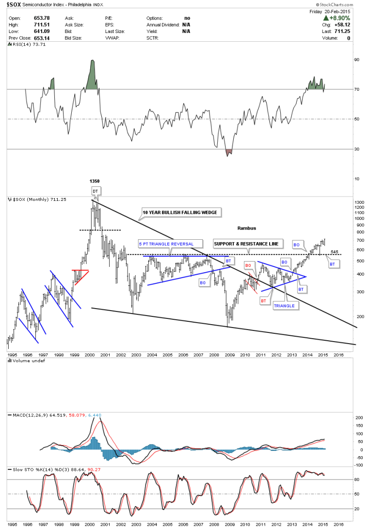 The monthly chart for the SOX shows its now trading at new multi year high going all the way back to the early 2000’s. I think this is going to be a sector that is going to play catchup with the other tech indexes.