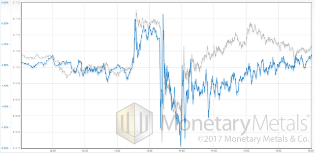 Note also the rise in price at 15:00, without a rise in basis. That likely reflects some buying of physical metal.