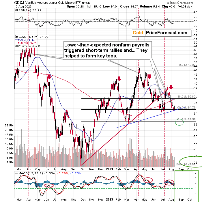 Also did I mention that 2023 is already a down year for the GDXJ and the price of silver? Because this actually is the case (despite moves lower in the USDX and moves higher in the main stock indices), which further emphasizes the reliability of the bearish narrative.