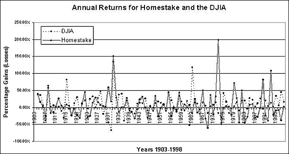 Annual Returns for Homestake and the DJIA