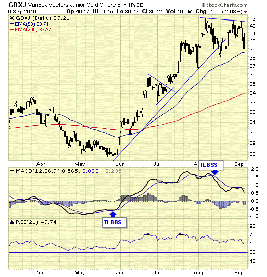 GDXJ is on short-term sell signal.