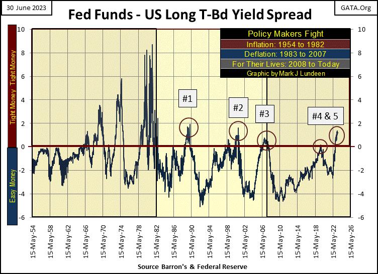 As seen in the chart below, since the early 1980s, every time the idiots inverted the yield curve (#1-4) a selling panic resulted somewhere on Wall Street, and a recession in the economy, as a bubble * THEY INFLATED * was popped by * THEIR INVERSION * of the yield curve;