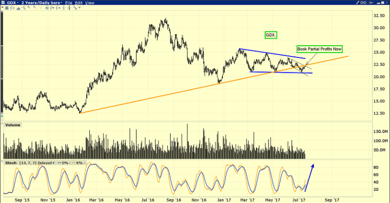 If the price moves back below $21, that capital can be re-deployed into GDX even more aggressively. I’m a buyer on every ten cents decline, and a partial seller on 50 cents rallies from my buy points.