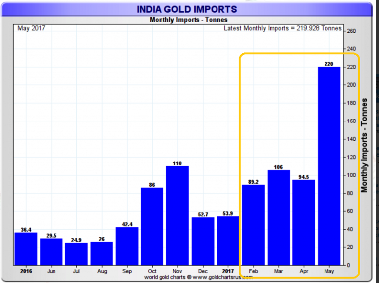 That’s a snapshot of recent Indian gold imports, courtesy of Nick Laird.