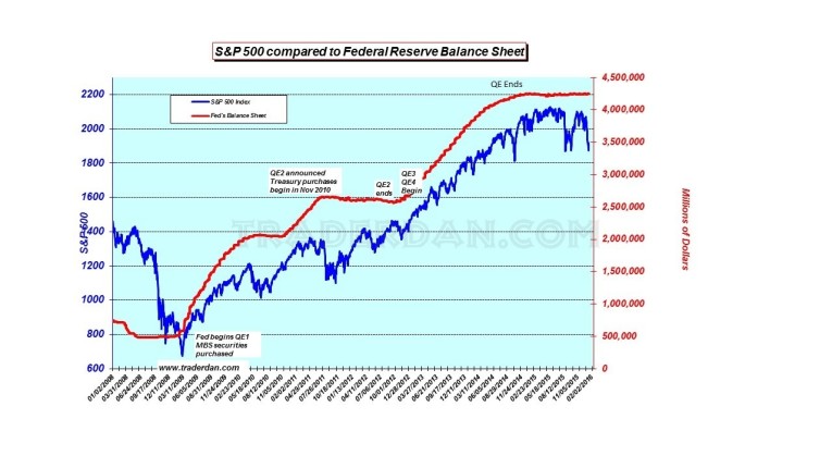 It has been a long time since I put up this chart comparing the S&P500 Index with the size of the Federal Reserve’s Balance sheet. The old adage “that a picture is worth a thousand words” is most appropriate in this instance.