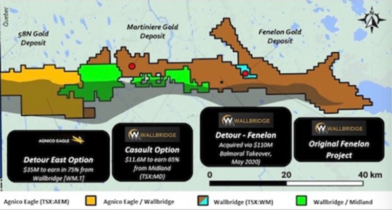 Wallbridge’s Detour-Fenelon Gold Trend land package.The Grasset Gold project is on the far right